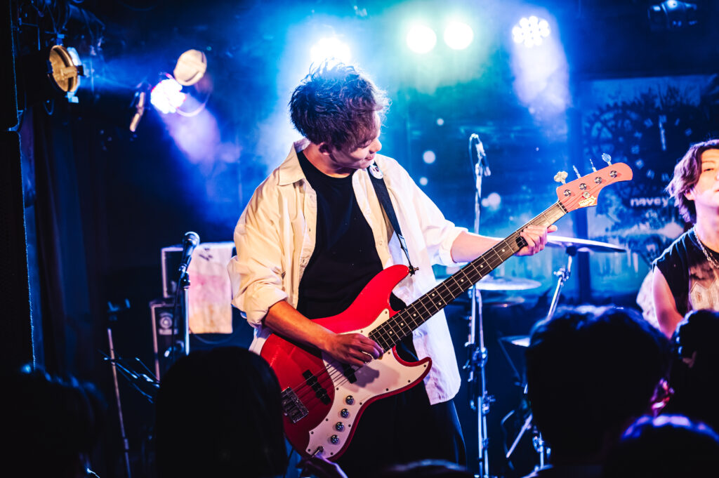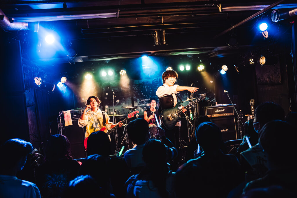 しゅんすけのビートに乗せて、ギターとベースのソロバトルを披露。