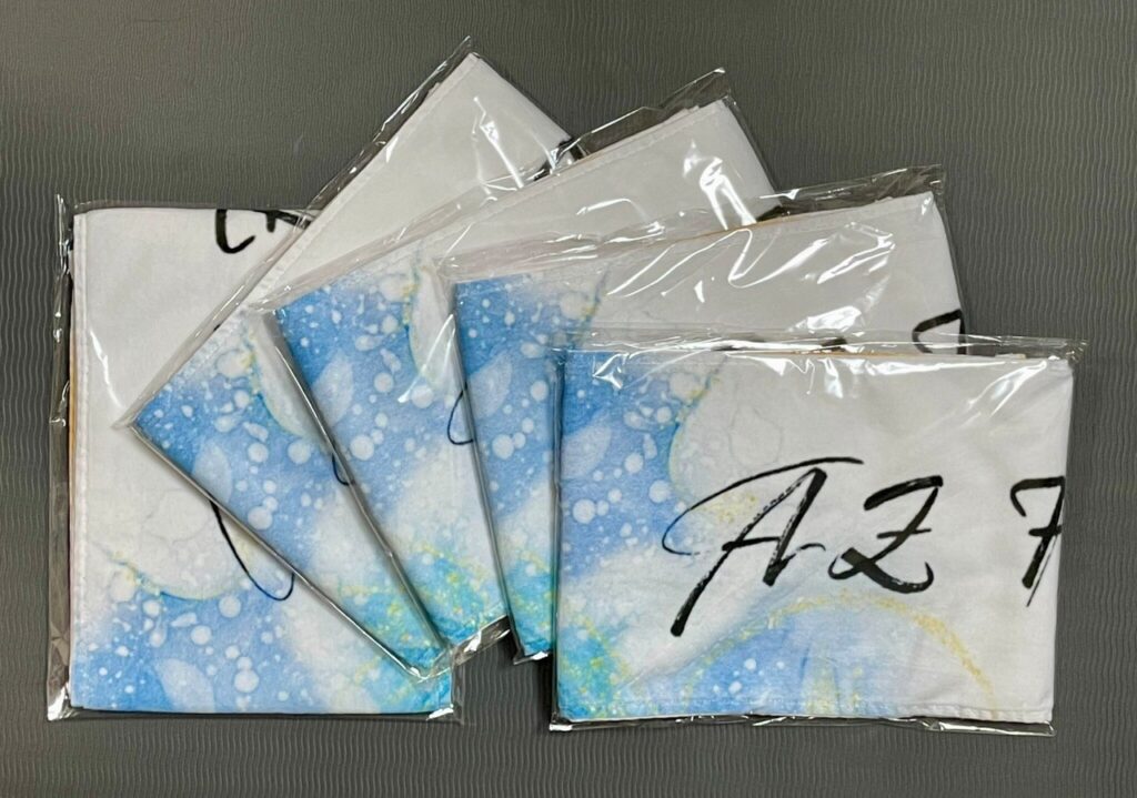 バンドを盛り上げるアイテムやライブで実際に使えるをグッズ制作、販売しています。デザインはメンバーが行いオンラインで販売も行っています。※一例を掲載しております。